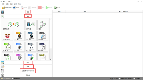 第一步,在电脑上找到格式工厂软件,然后点击打开,进入到软件的主界面当中后,我们在界面的左侧可以看到,软件不仅支持视频格式的转换,也支持音频、图片、文档等格式的转换工作。