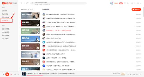 我们在喜马拉雅软件中能看到一个随心听功能,这个功能实际上是为一些不知道自己想要听什么内容而生的功能,随心听功能中根据不同的分类自动为我们挑选一些音频资源,我们可以直接按照分类进行选择,之后就不需要自己再手动去搜索内容了。