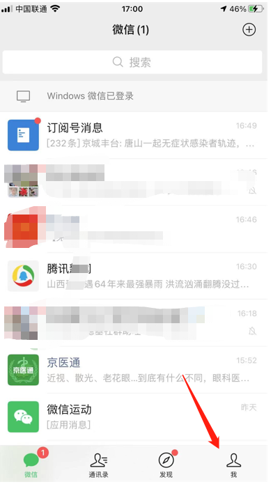 1.?打开微信进入到主界面后,点击下方工具栏我选项。