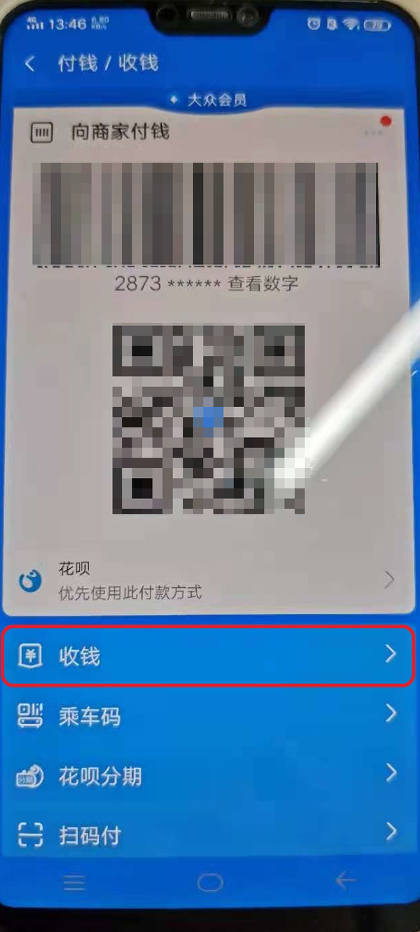 第四步,然后回到支付宝的主界面当中,在界面的顶部找到【付钱/收钱】功能,并点击进入。