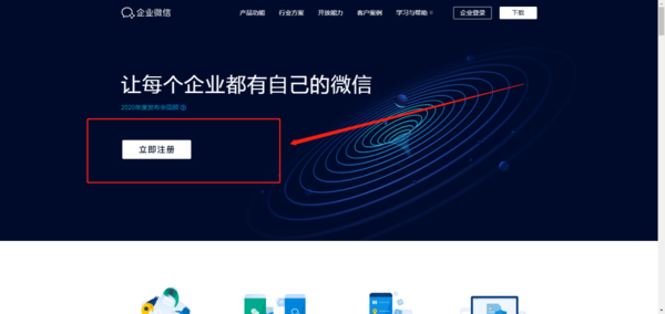 1、打开浏览器搜索“企业微信”进入企业微信官网,点击立即注册;