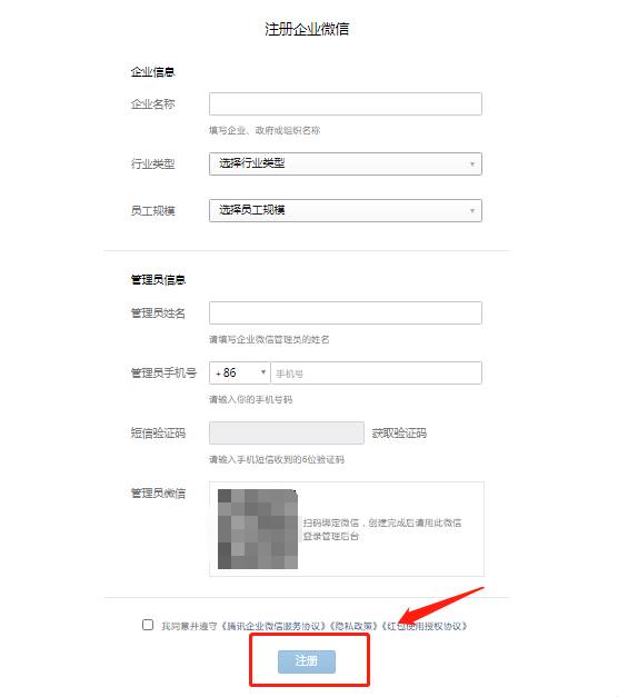 2、开始填写企业信息及管理员信息,完成后点击注册,等待审核通过;