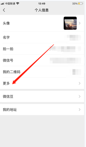 第三步:进入到个人信息界面后,会看到有一个更多图标,然后点击它。