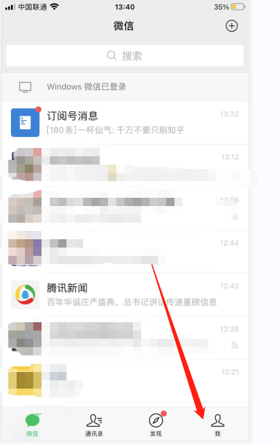 首先第一步:打开微信进入到主界面后,点击我的。