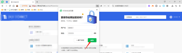 在电脑端打开360安全浏览器,登录网站之后,会自动弹出是否要保存此网站的密码的提示,我们选择【保存】即可。或者点击地址栏后面的钥匙图标,也会弹出提示框,保存之后下次进入该网站会自动填充账号密码,不需要手动输入,非常的方面。