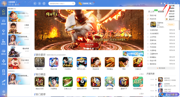 1、在QQ游戏大厅中,点击右上角菜单,选择【系统设置】进入。