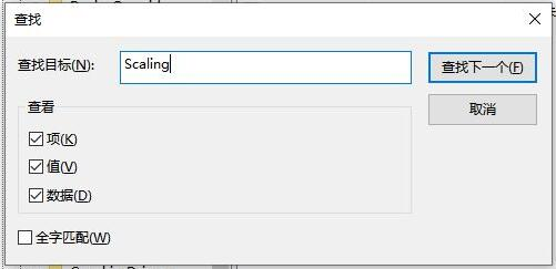 七、把鼠标光标放在Configuration上面,单击右键,点击“查找”,输入Scaling。