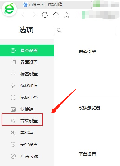 3、在设置界面,点击左侧的【高级设置】分栏;