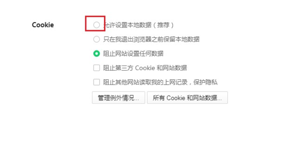 5、随后,找到【Cookie】一栏,在这里可以看到其权限了,找到想要开启的权限,勾选前面的圆圈即可。