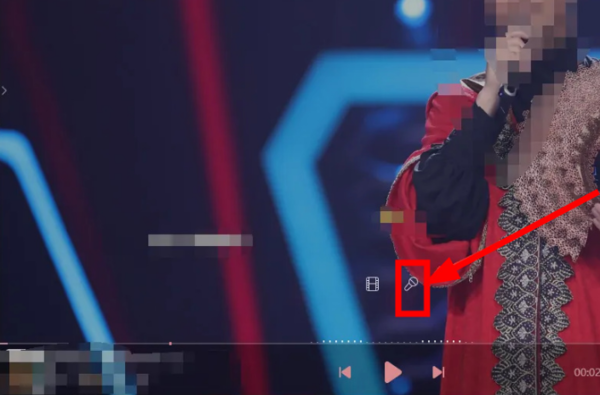 2、随后,在这里可以看到对应歌曲的页面,在这里有歌词、海报等等,点击中下方的【话筒】的图标;