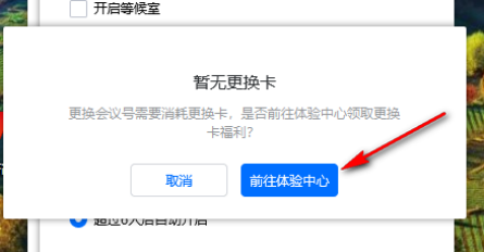 第四步,点击页面中的“更换”按钮,就可以对会议号进行修改了。不过需要使用“更换卡”,如果没有“更换卡”可以点击第二个选项“前往体验中心”来获取。