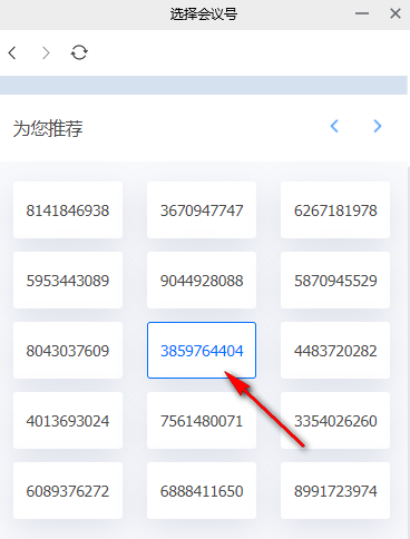 第八步,这时就来到了选择会议号的页面,挑选一个喜欢的会议号,以后就可以长期固定使用了,快去试一试吧。