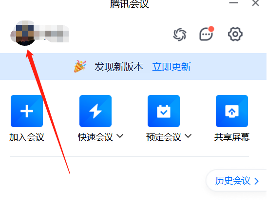 1,在电脑上启动腾讯会议,进入到主界面以后,点击左上角自己的头像。