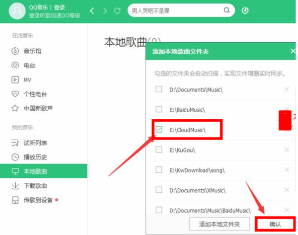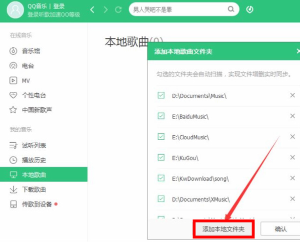3、随后会出现一个窗口,这里有软件自动扫描后的文件夹,大家可以找寻一下,如果嫌找起来麻烦就点击下方的【添加本地文件夹】;