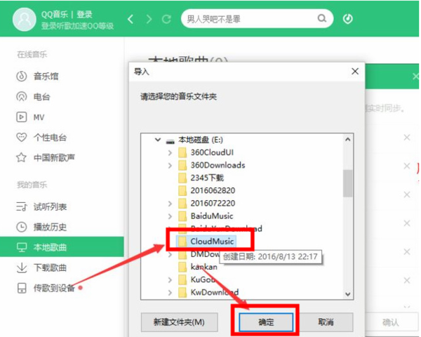 4、在弹出的窗口中定位找到对应的文件夹,点击【确定】即可;