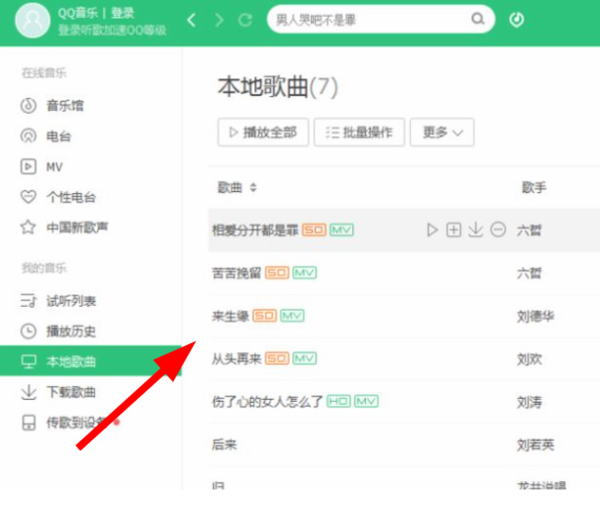 6、最后就可以看到,在本地歌曲分栏中就有我们添加的音频文件了。
