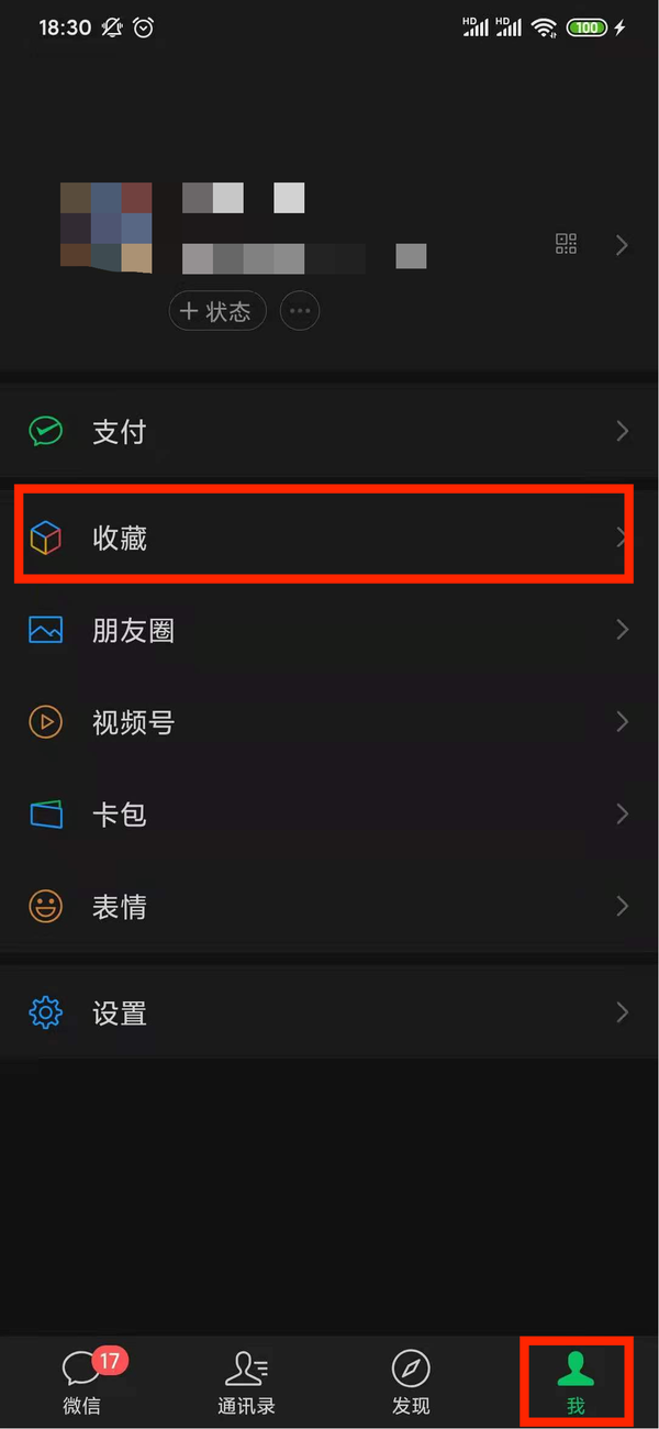 第一步,打开微信,点击右下角的“我”并打开“收藏”选项;