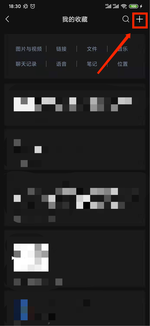 第二步,在收藏界面右上角有一个“+”点击这个加号添加笔记;