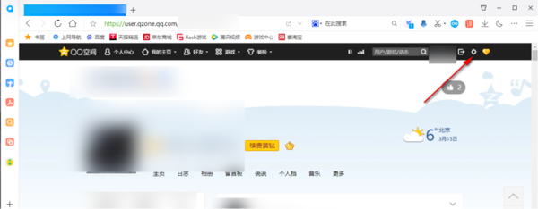 二、此时就跳转到了默认浏览器,进入了QQ空间的网页版,在这个页面找到右上角的“设置”按钮,然后点击进入到设置页面。