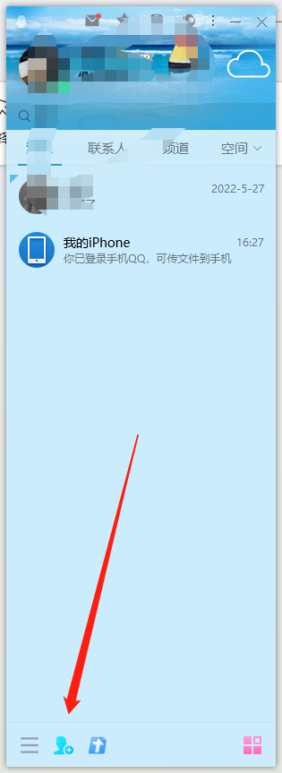 1,首先,我们在电脑上打开QQ面板,在面板的左下方位置找到一个蓝色的人头图形,点击进入到“添加好友”的页面。