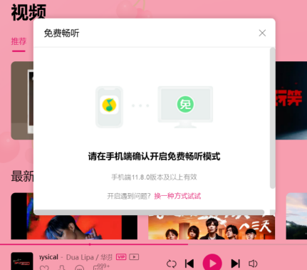 2,这时就会弹出免费畅听的页面,需要我们在手机端去确认开启“免费畅听”模式。