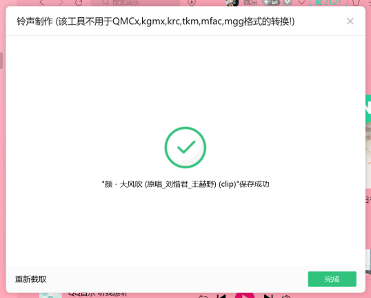 6,这时在“铃声制作”页面就会呈现下图所示的画面,根据保存进度等待即可,最后页面展示出绿色的对勾图标,就代表已经成功保存了,这样一条铃声就制作完成了。