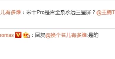 2月14日消息,有网友在小米公司产品总监王腾微博下留言:小米10 Pro是否永远全系三星屏?王腾给出肯定回答:“是的”。小米10 Pro采用定制AMOLED原色...