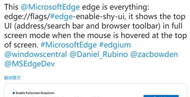 据WindowsCentral消息,微软Edge浏览器目前已支持全屏模式下呼出标签页、地址栏和书签栏。今天推特网友发现了微软Edge浏览器的一项新功能,名为“shy ui&...