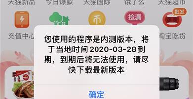 3月25日消息,今天凌晨开始,部分iPhone用户打开手机淘宝时遇到了弹出“内测版”提醒的消息。弹窗内容显示:“您使用的程序是内测版本,将于...