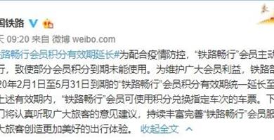 今日铁路12306官方发布通知称,近4月到期的铁路畅行会员积分有效期延长至9月底。了解到,此次延长措施主要面向2020年2月1日至5月31日到期的“铁路畅行”会...