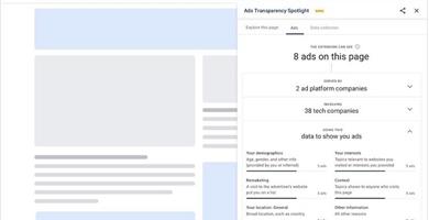据外媒 ZDnet 今日报道,谷歌现推出了一款名为 “Ads transparency spotlight”(广告透明度聚光灯)的广告信息显示拓展。谷歌称,该拓...