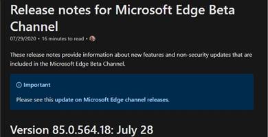 微软目前已经向 Beta 测试版通道正式推送了 85.0.564.18 版本的 Edege 浏览器。此次更新内容包括支持收藏夹和设置的本地同步、IE 模式更新、PDF 新增荧光笔工具、支持 Stora...