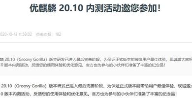 据优麒麟官方宣布,优麒麟 20.10(Groovy Gorilla)版本研发已进入最后完善阶段,现诚邀大家积极参与优麒麟 20.10 版本内测活动,以保证正式版本能带给用户最佳体验。更新内容内核内核升...