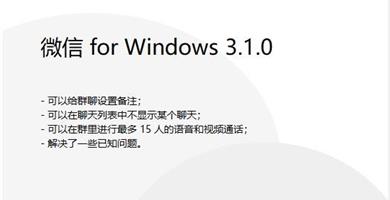 微信近期发布了 Windows 微信 3.1.0 测试版,带来了几个新的功能。本次Windows 微信 3.1.0 测试版更新新增群聊设置备注,聊天列表中不显示某个聊天,群里进行最多 15 人的语音和...