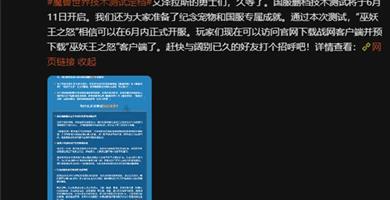 6月6日,《魔兽世界》官微宣布,国服删档技术测试将于6月11日开启。据介绍,6月11日起将开启为期7天的"巫妖王之怒"技术测试,将通过此次测试为"巫妖王之怒"开...