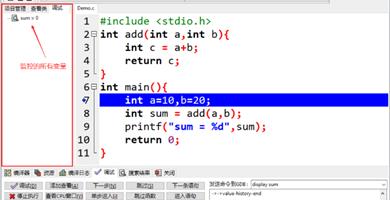 dev c 的使用和调试:1. 使用断点调试若无法调试:工具–>编译选项–>代码生成/优化–>连接器–>产生调试信息–>no改成yes调试的基本步骤;一、把右上角的rel...