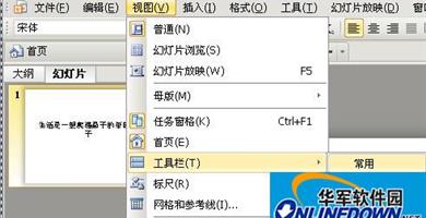 操作步骤: 1、点击WPS演示“视图”——“工具栏”——“常用”。这样导航栏中会出现一个新的栏目。常用 2、选中需要转换的文字,点击“繁”按钮,出现一个方框,再点击“转换为繁体字”。简繁体自由转换 3...