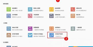 【操作步骤】1、打开PC端91助手——功能大全。2、点击手机铃声制作。点击手机铃声制作3、从电脑上选择一首音乐。选择一首音乐4、定制个性铃声的起始和结束的位置&...
