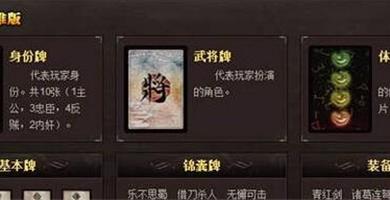 一、卡牌介绍:根据卡牌不同内容和作用我们将其分为【身份牌】、【武将牌】、【体力牌】、【基本牌】、【锦囊牌】、【装备牌】。...