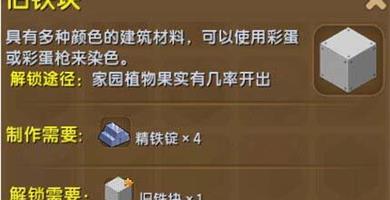 迷你世界游戏的玩法非常有趣,吸引了很多玩家。那么大家知道游戏中的旧铁块怎么获得吗?这里小编就为大伙带来了旧铁块获得方法介绍,大家不要错过哦。旧铁块:获得方法:通过制作获得,精铁锭X4解锁途径:家园植物...