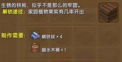 想必大多数新手玩家还不了解迷你世界中条纹锈铁板是怎么获得的?那么今天小编就为玩家们带来了条纹锈铁板获得方法,有需要的朋友赶快来了解了解哦。条纹锈铁板:获得方法:通过制作获得,精铁锭X4、盛水木桶X1解...