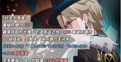 一、生存优势分析【护盾量】这应该是不少开拓者关注的关键点,低配练度砂金的盾量表现如何?以最低配,光锥呈现兑换的「织造命运之线」为例,10级天赋且不考虑遗器套装效果纯散件的情况下,砂金战技与入战初始可为...